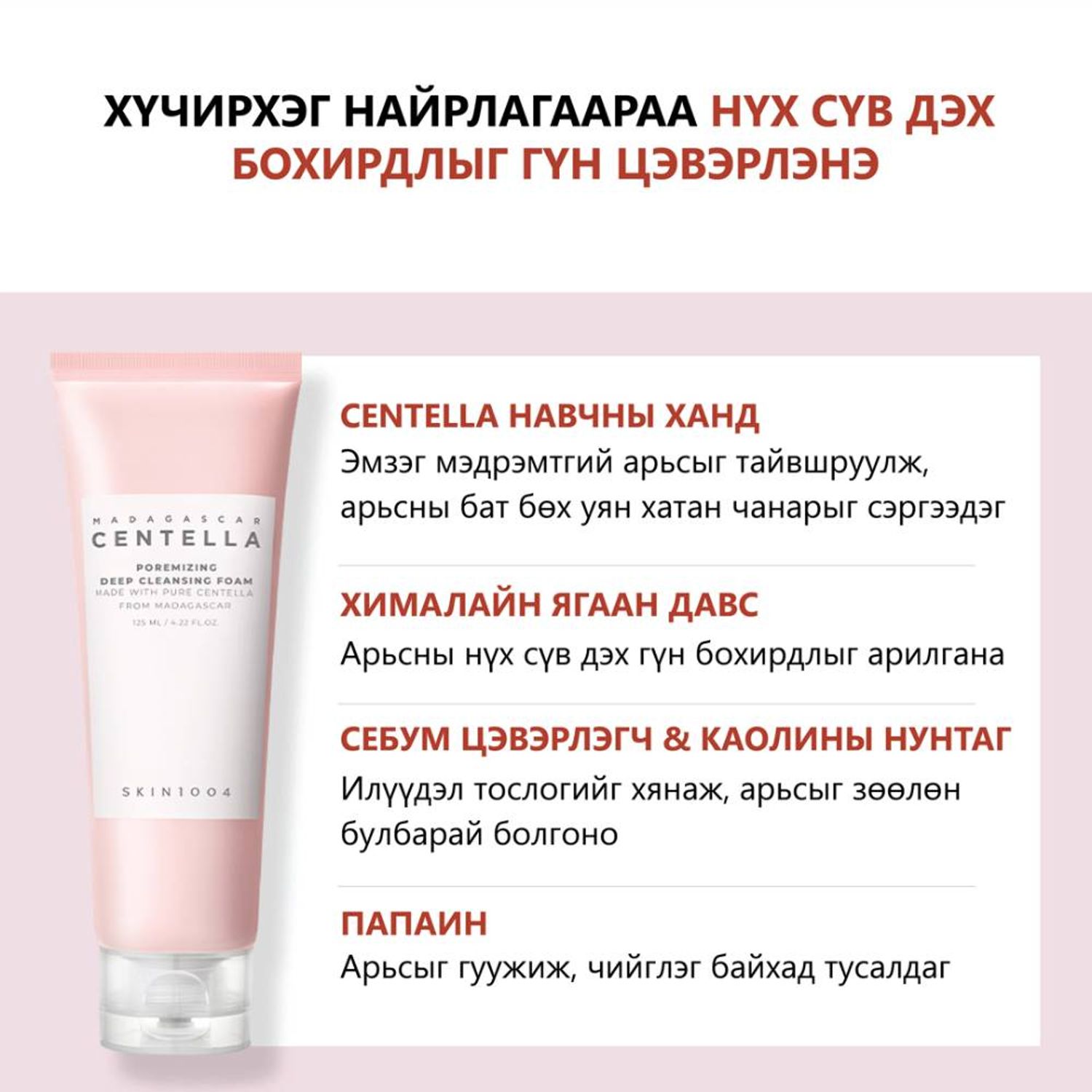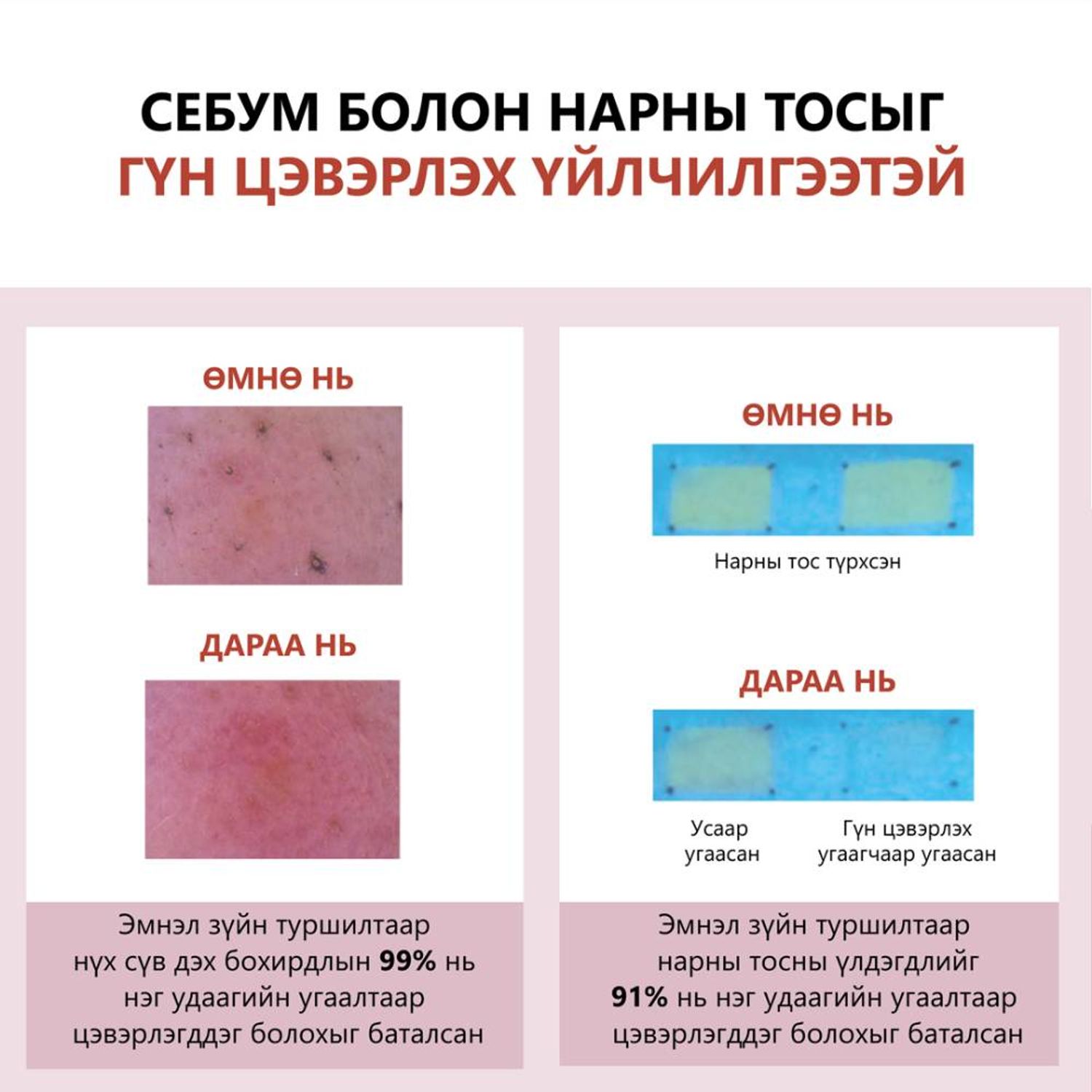 - Нүүрэн дээрх бохирдол, арьсны нүх сүв, нарны тос зэргийг сайтар задалж, цэвэрлэнэ